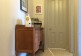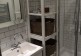 This shower is powered by the combi boiler. The room is bright and modern, with tiled floor and metro tiles on the walls.