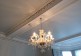 This is a really large, bay windowed bedroom. It has a vintage chandelier, period fireplace with working gas fire, double bed, cornicing.