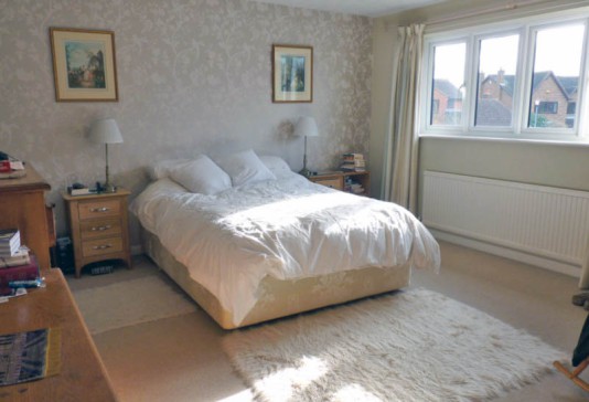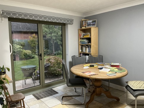 We have spacious lounge with south facing view over private garden, comfortable bedrooms, easy use kitchen dining area. The house is on small development built 40 years ago .