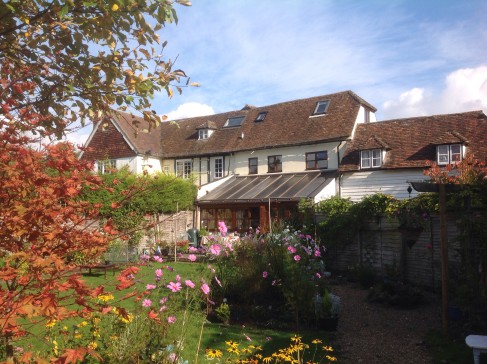 Our sixteenth century cottage is the middle of three, located near the North Downs area of Outstanding Natural Beauty and backs onto open land which was once a fruit farm. Our cottage has three bedrooms and is situated up a private track in a semi rural situation. The cottage was originally one dwelling, but was divided into two at some point in the past: a smaller beamed cottage is attached on our other side.