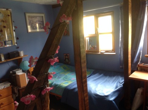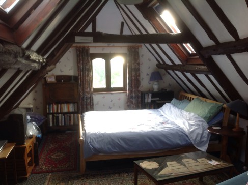 The cottage has a lounge, kitchen, downstairs bathroom and a Sunroom. Upstairs the main double bedroom overlooks the garden, next door is a bedroom with two single beds, and it has lovely exposed beams. There is a small toilet on the landing which includes a niche of a previous bread oven. A further flight of stairs takes you to our second spacious beamed double bedroom, which is equipped with a sofa, coffee table and has an en-suite bathroom. The sofa there converts into a double sofa bed, although we haven`t had to use it as such for a while.