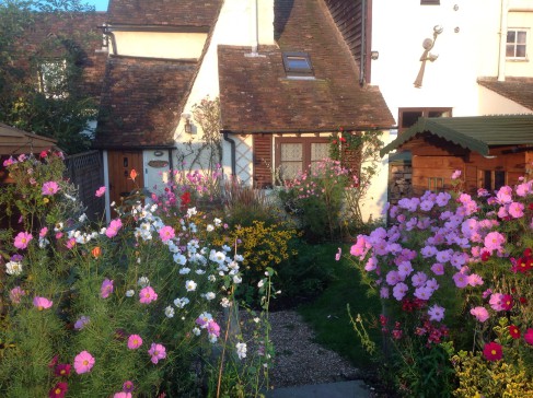 The four hundred and fifty year old cottage has plenty of character, with ancient oak beams and an open fireplace but with also a roomy and spacious Sunroom which overlooks our garden, which is stocked to the brim with perennial cottage garden flowers.