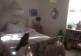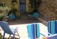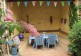 1st. floor: With a second front door ( house can also be entered from steps at side of house) into small sitting room with open fireplace ( + bookshelves, TV, DVD player ) a double bedroom & a large kitchen / diner ( with woodstove ) opening onto a private internal courtyard - NOT a garden, but a colourful & peaceful spot for relaxing, with covered shady area for dining.