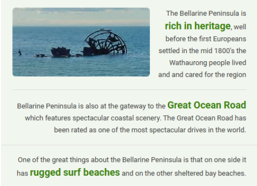 Olde Worlde town of Queenscliff is 30 min drive where you can catch the Ferry to Sorrento.