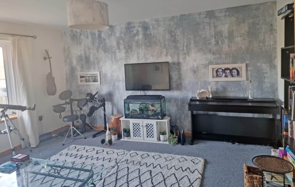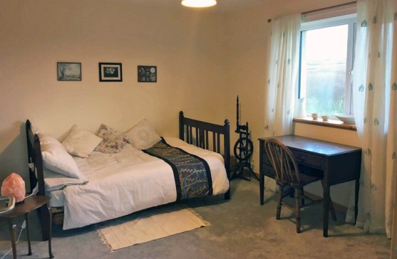 There is a double car park and a large garden. All the bedrooms are large, but the available sleeping spaces are: 1 double bed, 1 single bed, plus 1 extra double mattress and a small double, shortish sofa bed. The bathroom has a bath and there is also an extra toilet.
