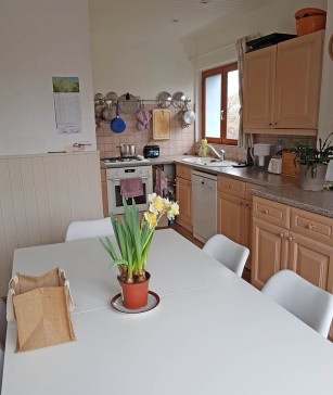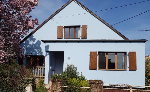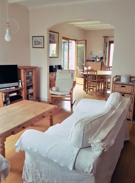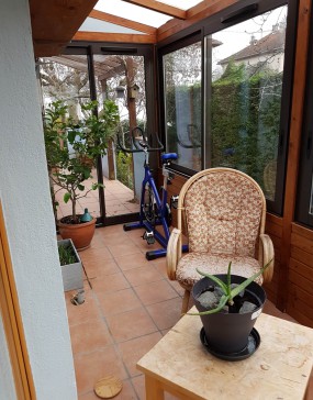 Our house has been recently renovated and is surrounded by a good sized mixed garden with flower beds, vegetables and fruit trees, we also have three bee hives which are normally no trouble. On the ground floor of the house there is one bedroom, an office and spacious kitchen. The lounge/dining room is large and there is a wood burning stove that we use to heat the house in the winter. We have wooden and tiled floors and carpets upstairs where there are three more bedrooms and two bathrooms. In addition, we also have a basement flat that na also be used as sleeping accommodation