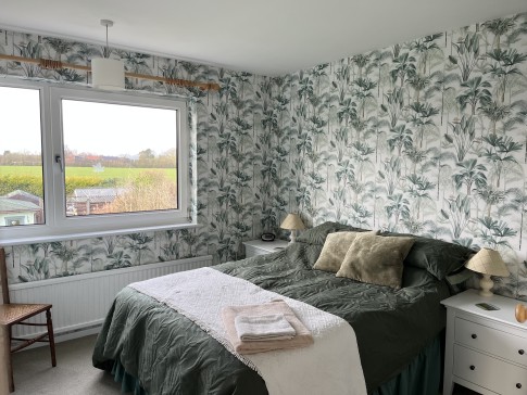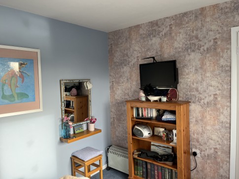 Upstairs is smaller but with three double bedrooms (one with TV) and family bathroom (shower over bath.)