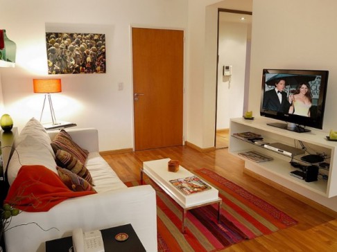 - LIVING ROOM: skillfully decorated, very quiet and comfortable area. You can sit and relax on the elegant sofa of this room and watch TV on the 32’’ LCD TV. Coffee table. DVD player. Wooden floors. Air conditioning.