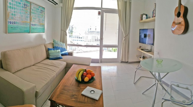 The apartment has lift access. Set away from the road overlooking the paseo and the Sea. The accommodation comprises 1 bedroom, and 1 good sized bathroom with shower, toilet, sink, hairdryer etc. A fitted kitchen with washing machine, iron, gas hob and small electric oven. Free... high speed internet,