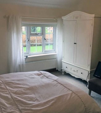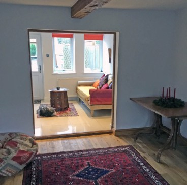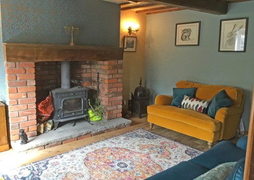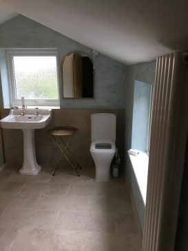 The cottage, which is close to the borders of Shropshire and Wales, is approximately 200 years old. It is a double fronted middle cottage, situated between 2 smaller ones. The two reception rooms have beamed ceilings, bay windows, and the lounge has a log burning stove. There is a walled and gated courtyard at the front of the cottage and a long, large, enclosed garden to the rear, which looks on open fields. The extended kitchen/diner, is open plan, and overlooks the garden. The seating area in the kitchen contains a large sofa bed. Just off the kitchen is a small bathroom with a toilet and washbasin. Upstairs there are two large bedrooms, and a large bathroom, which has been recently refurbished in relaxing  colours, textures and style,  with a walk in shower. To the side of one of the cottages, there is an access road which leads to the large wooden entrance doors to the garden. Immediately outside the back of the house is a paved area, and then a large gravelled area for parking. After that there are flower beds, and then two areas of lawn. The central heating is oil based, and the boiler is situated outside.
