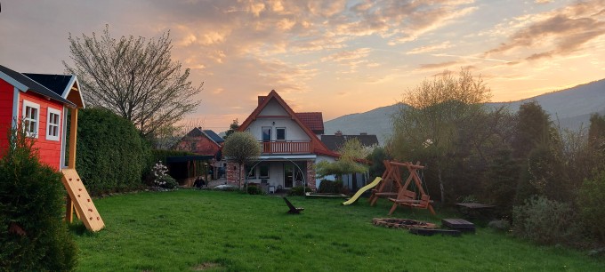 Our house is 1.20h from Katowice airport and ca. 1.40 h from Krakow airport. Both well commuted by train or bus to where we live.