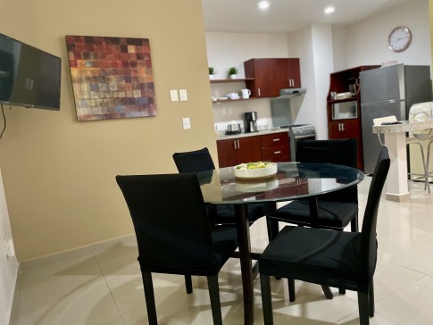 This apartment is just 2 short block away from the main strip on Camaron Sabalo Avenue , where you can catch public transportation or take long walks. You are very close to the beach access, mini markets, cafes, etc. . One parking spot is also provided to each apartment.
