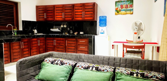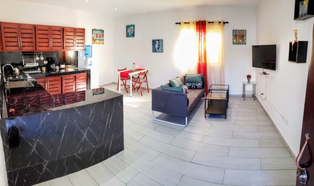 This 1 bdrm. apartment is newly constructed. The Apartment have a living area with Flat LCD TV (with cable) and a kitchenette with a coffee maker, fridge, stove, and sink. In the bedroom queen size bed with In-suite private bathroom, walk in shower with hot water , Towels and sheet are provided. Also Free WiFi Internet and Free parking is available on the street. Located In the center of Las Terrenas on quiet side street , Its only 300m from the beach and about 200m from famous French Bakery "Boulangerie Francaise" and local night club "La Bodega". Very secluded location , yet in the middle of all. El Catey International Airport is 20 minutes away from our aprt.. El Portillo beach is 5 minutes’ drive away, and Limon Waterfall is 15 minutes’ drive away.