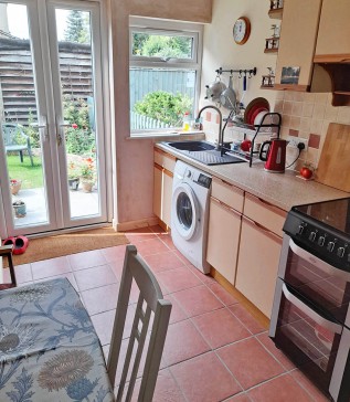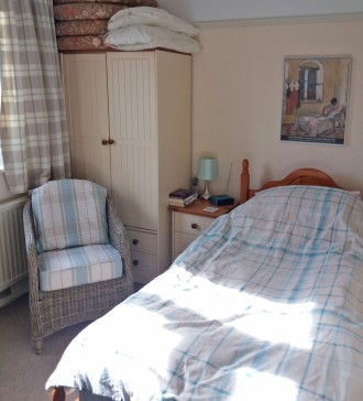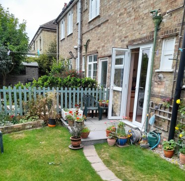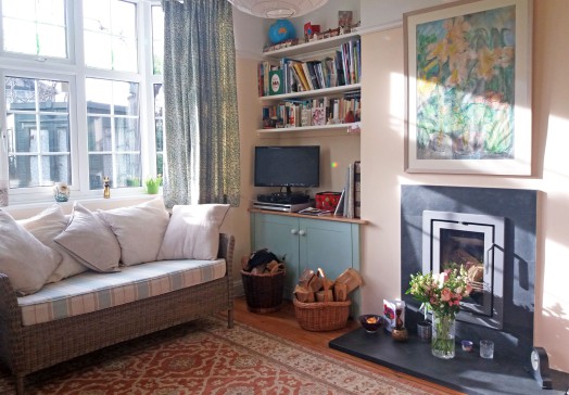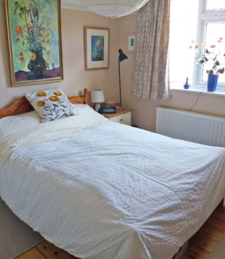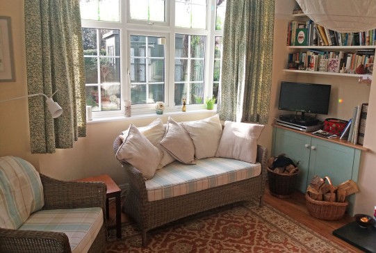 My cosy home is a ground floor flat in a quiet residential area of Cambridge. From here you can cycle or walk into town and there are regular local buses. The flat is in a block of four, built in 1932 to house employees of the local department store. So we have individual entrances and my flat enjoys plenty of secluded garden space.