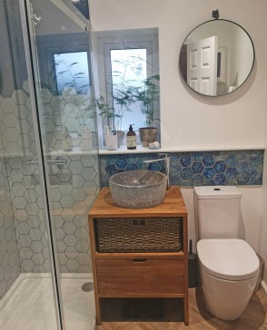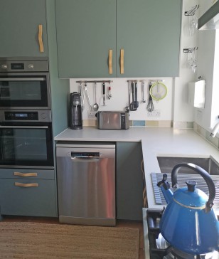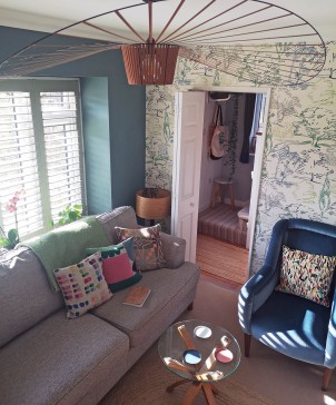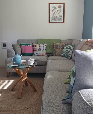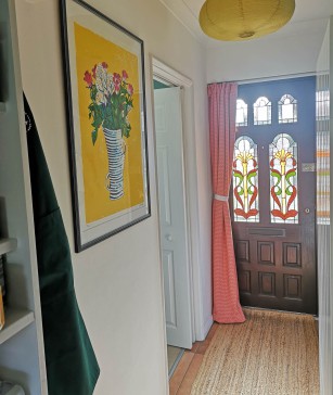 We take great pride in our home and have tried to include things that are both beautiful and practical. It is cosy with a lovely wood burner. We have used calming colours and comfortable fabrics which we hope make it feel nurturing. There are nods to nature throughout and you can see trees and plants from all downstairs windows. We have lots of artwork on the wall; some by local artists and some prints we have brought from our travels and past house swaps. We have tried to create a sense of flow throughout the house whilst also mixing old and new. It may not be the biggest house, and yes it is on an estate, but it is quiet, peaceful and there is a lot of warmth from the local community.