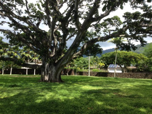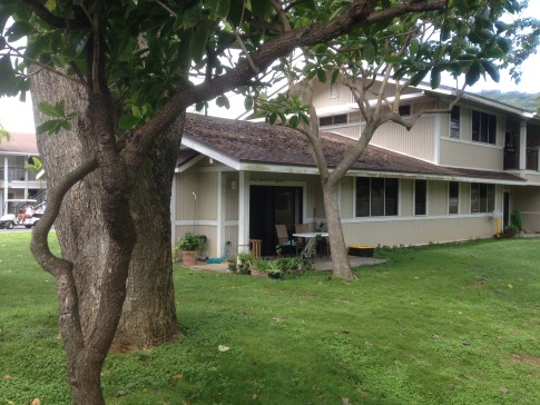 A single story house at the end of a row. Our lanai (deck) looks onto a large shared lawn with a huge banyan tree in the center. Manoa is one of the more desirable neighborhoods on Oahu, with close proximity to all of Honolulu`s attractions. A vigorous walk up hill at the back of the valley yields stunning views of Waikiki and Diamond Head. Shops, cafes, and a farmer`s market are a 5-minute walk. The University of Hawaii campus, with its beautiful gardens and trees, is just down the street. The local park and swimming pool (free) is a ten-minute walk.