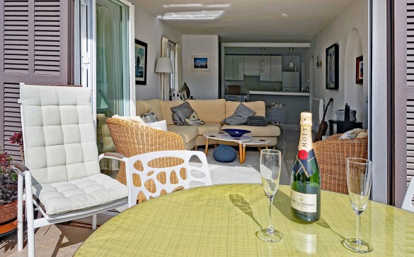 Luxury apartment in a quiet area with southerly aspect overlooking the port, marina and mountains. 15 Mins walk into the port and numerous bars and restaurants, 2 minutes walk to the local beach.