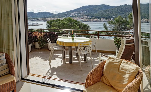 Extract from tourist info: "On the west coast of Mallorca Port d‘Andratx is an exclusive harbour town in front of picturesque mountain scenery. The snow-white hulls of outrageously expensive sailing and motor yachts sway backward and forth on the turquoise waters. The yacht club has 450 berths and in midsummer every single one of them is occupied.