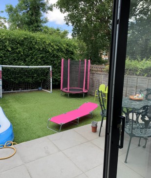 I have a small garden which is a suntrap in summer with a small table and 4 chairs, and a football goal! The shed contains some deckchairs etc as well. The garden has astroturf.