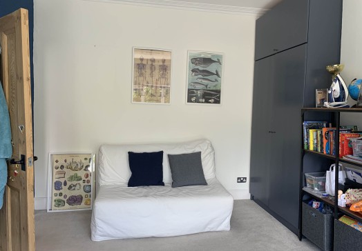 My house is a nicely decorated family home in Finchley, North London (zone 4), arranged over 3 floors. Master bedroom (double) with en-suite bathroom is in the loft conversion. On the middle floor are two large kids bedrooms each with single beds and a small box room with a single bed in. There is a family bathroom on that floor. One of the kids` bedrooms also has a double sofa bed in it.