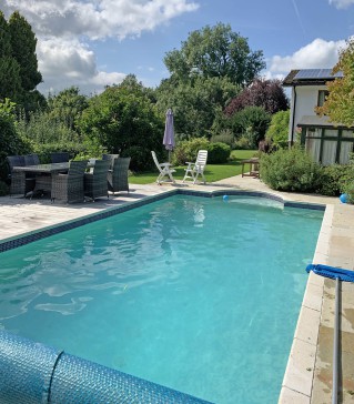 Heated swimming pool (June, July and August), log burner and ample parking. We have solar panels and a Tesla battery so are almost self sufficient energy wise .