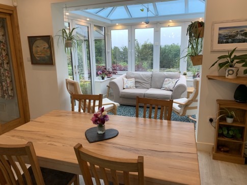 Stunning, spacious, sunny home on the Welsh / Cheshire / Shropshire border. Freshly decorated, set in an acre of well kept garden of mature shrubs, flowers, vegetables and fruit trees and woodland area.
