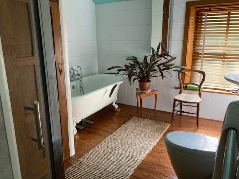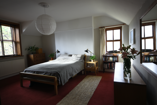 Upstairs there is a spacious bathroom with bath and separate shower (you can't see in the picture), and two good-sized bedrooms (the third double is used as a dressing-room/ workspace with desk).
