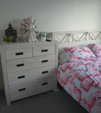 There are 2 queen size beds (bed in main bedroom was replaced this year), washer and dryer and all cooking amenities, gas Webber bbq attached to gas supply.