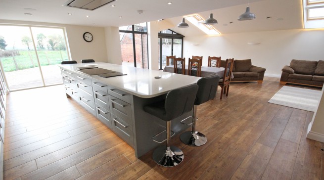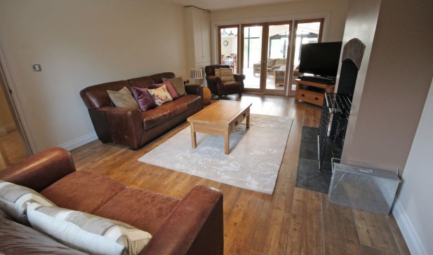 Spacious new build house with large open plan kitchen diner, lounge, children’s play room and extensive garden. Garden includes kids play area, football pitch, bbq and pizza oven plus fire pit.