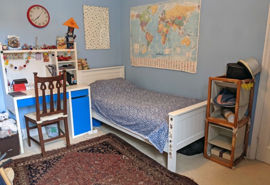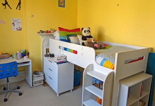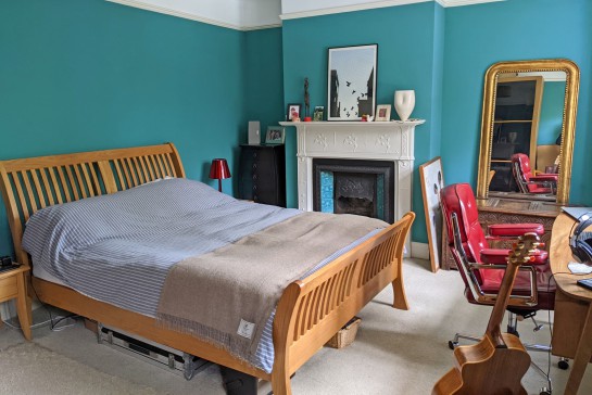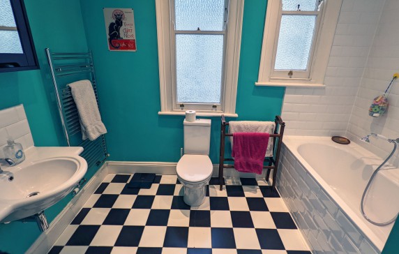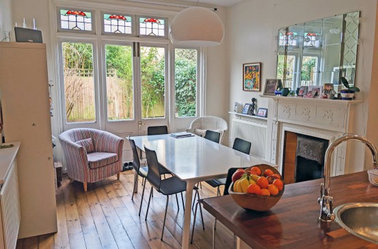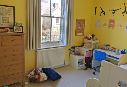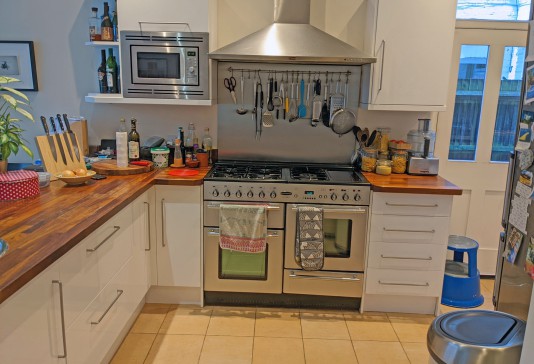 Our Edwardian house has a large kitchen/dining room, living room, shower room and utility room downstairs and four bedrooms (one large double, two large singles and one small double) and a bathroom upstairs. The house has lots of original features including stained glass windows and fireplaces.