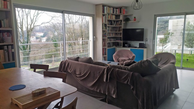 Our modern four-bedroom house is located in Caluire, on the hill opposite the 6th district of Lyon and the famous Parc de la tête d`or. It is part of a new housing estate composed of 7 detached houses in a private cul-de-sac closed by a gate, which provides a safe environment for the children to play.