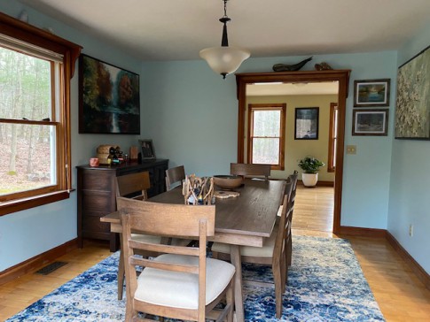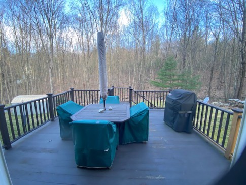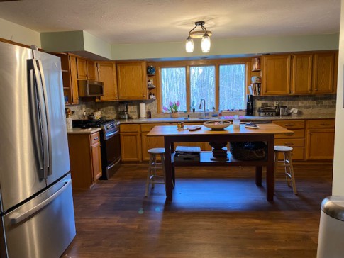 The backyard is big with the woods on the backside and a nice deck where you can cook in the grill too. It is surrounded by nature and some gardens, perfect to recharge after adventures in the nearby cities and New England towns. Neighbors are nearby but not close. The heating system in winter and integral AC in Summer work great.