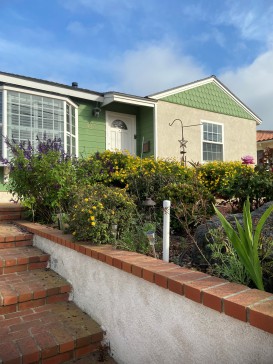 This San Pedro house has charm on the outside and comfort on the inside. From the front yard you can see the Pacific Ocean and - depending on the weather - a view of Catalina island. From the front door you enter a dining room, which is open to the kitchen. The largest bedroom has two twin beds that can be combined into a king size bed. The second bedroom has a queen bed. One bathroom includes a tub and shower combination. The other bathroom is small and includes a shower. There`s a cozy, wood- burning fireplace in the living room. Next to the living room, two steps lower, is a bright and cheery sunroom that looks out onto the backyard garden and patio where there`s a portable outdoor grill.