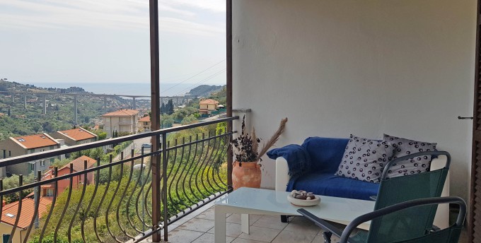 Superbly located house in the medieval town of Vallebona, one of the “Magnificent community of the eight villages” on the Ligurian sea coast. Two-storey family home or two large self-contained apartments with separate entrances. Massive terrace with views to the sea and mountains