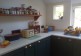 Bright and airy kitchen includes combined washing machine and dryer, integrated fridge freezer, and dishwasher.