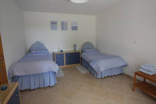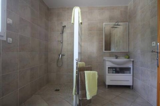 To one side of of the hall is the master bedroom suite which includes the bedroom (12m2), a large walk-in dressing room (8m2) and an ensuite shower room (shower, wash-basin and WC). This room also benefits from air-conditioning.