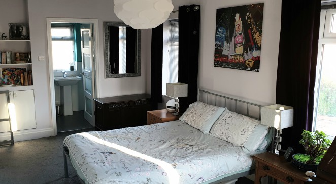 This Victorian house has 3 large bedrooms, with 2 doubles and 1 single bed. It has a family bathroom, an ensuite attached to the master bedroom plus a downstairs toilet. The master bedroom also has an adjacent dressing room area. Downstairs there is a living room, office / playroom /storage room and a large kitchen / dining / seating area at the back of the house, with bi-fold glass doors onto a large patio and small-ish garden.