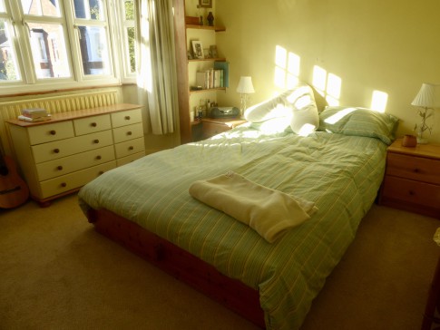My house is a comfortable semi-detached Edwardian house with patio, parking and a long attractive garden. It is situated in a quiet treelined street within a 5-10mins walk, through a park and passed a leisure complex, to the town centre.