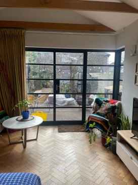There is a large open plan living area and kitchen at the back, with exposed brick and Crittall doors onto our garden with a seating area and firepit. We have a cosy sitting room at the front with a gas fire (easy to light!), and SKy, Netflix, Disney + and Amazon in both rooms.