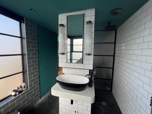 The top floor is a master suite, with a huge bath, walk in shower and separate WC at the front plus a walk in wardrobe. There is also a roof that opens in the master suite.