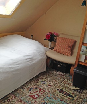 Our house has 3 sleeping rooms; the main sleeping room with a double bed, the attic room with a double sofa bed and the children’s room yet with one single bed. Plus there is another double sofa bed in the study. There are some small children’s beds.
