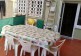 We have a kitchen with table, oven, dishwasher and washing machine, it leads to an access to an outside area with table.