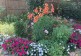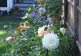 The back yard is a lovely area plenty big enough for a croquet match surrounded by numerous flowering plants and shrubs.