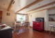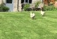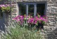 A large lawned garden with well stocked perennial flowers, a patio area with outdoor seating and a barbecue. Possible use of wood fired hot tub.