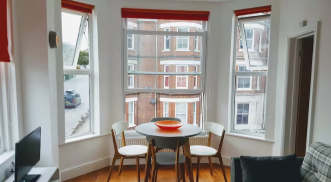The flat is a short walk from both the beach and the town centre. The building is on the border of Evington Gardens: a large green space in the centre of Cromer and perfect for a picnic. Morrisons and the late night garage are both close. It's a fab central location.