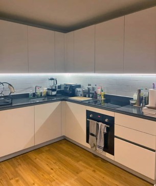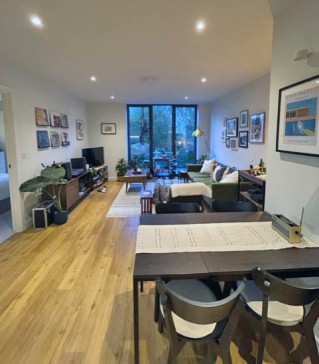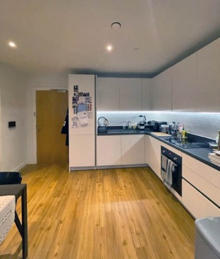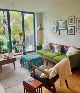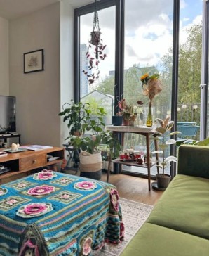 Our apartment is situated in a new build block (built 2021) about 5 minutes` walk from Manchester`s Northern Quarter. It has one main living and dining area, with a fully equipped kitchen. Our living area is cosy and warm, with a green sofa and lots of house plants. We have a TV with several streaming options and other entertainment. It also has a good size balcony leading off from the main room with seating outside.