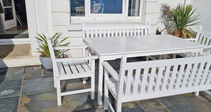 At the front of the property is a large patio with table and chairs plus beautiful alpine plants to give the garden a Mediterranean feel! At the back of the property is a smaller, enclosed courtyard with beautiful porcelain tiles and two comfy outdoor chairs. This area is cooler in the summer months.