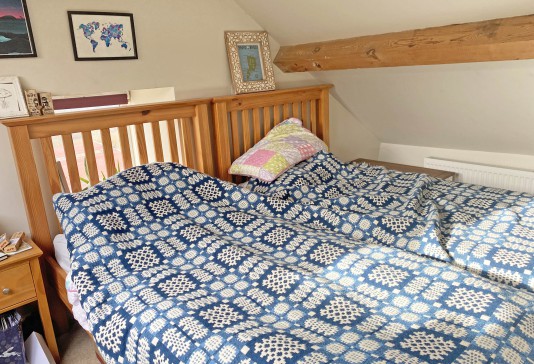 My house has one bedroom downstairs with a double bed and twin beds up steep steps in the traditional ‘crog loft’.