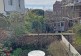 Outside is a balcony with the sea in the distance, and a small courtyard garden with table and chairs.