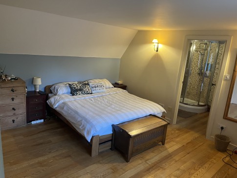 Our comfortable family home is just over 20 years old but has all the character of a much older property, complete with thatch roof, wood burner and old beams. It offers four double bedrooms, two with double beds, one with twin beds and a baby's cot and one with a double sofa bed. The master bedroom comes with an en-suite bathroom with separate bath and shower. There's also a spacious family bathroom, also with bath and shower.